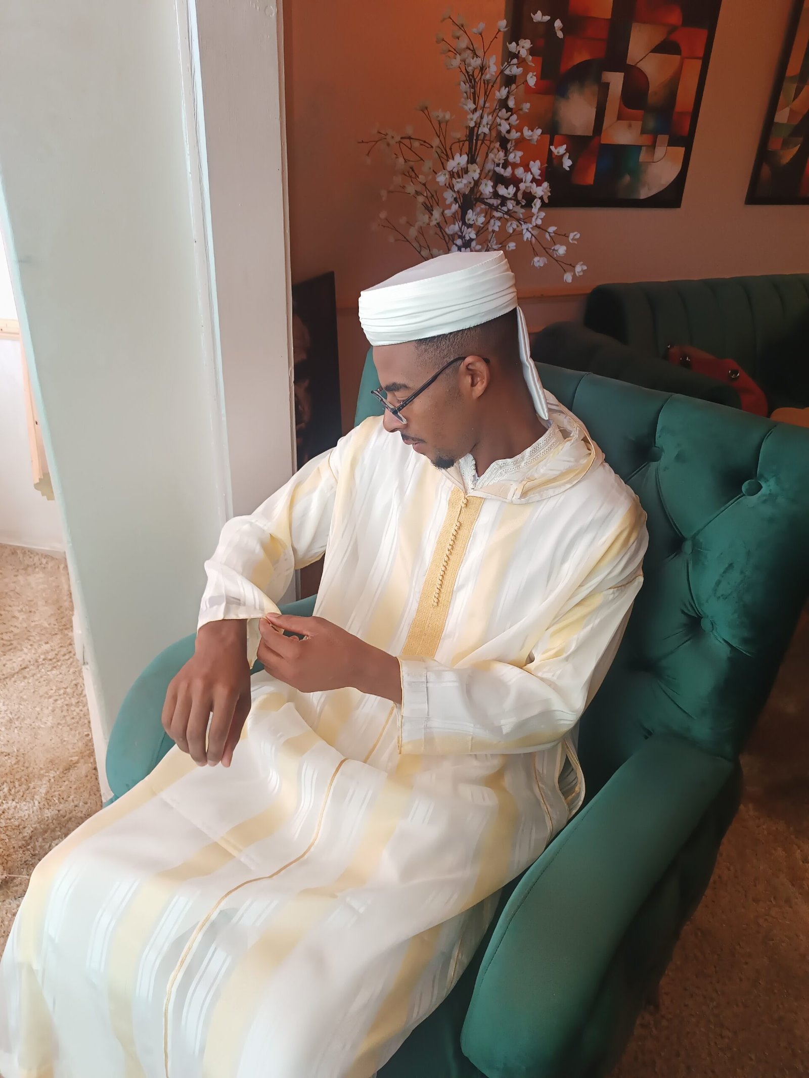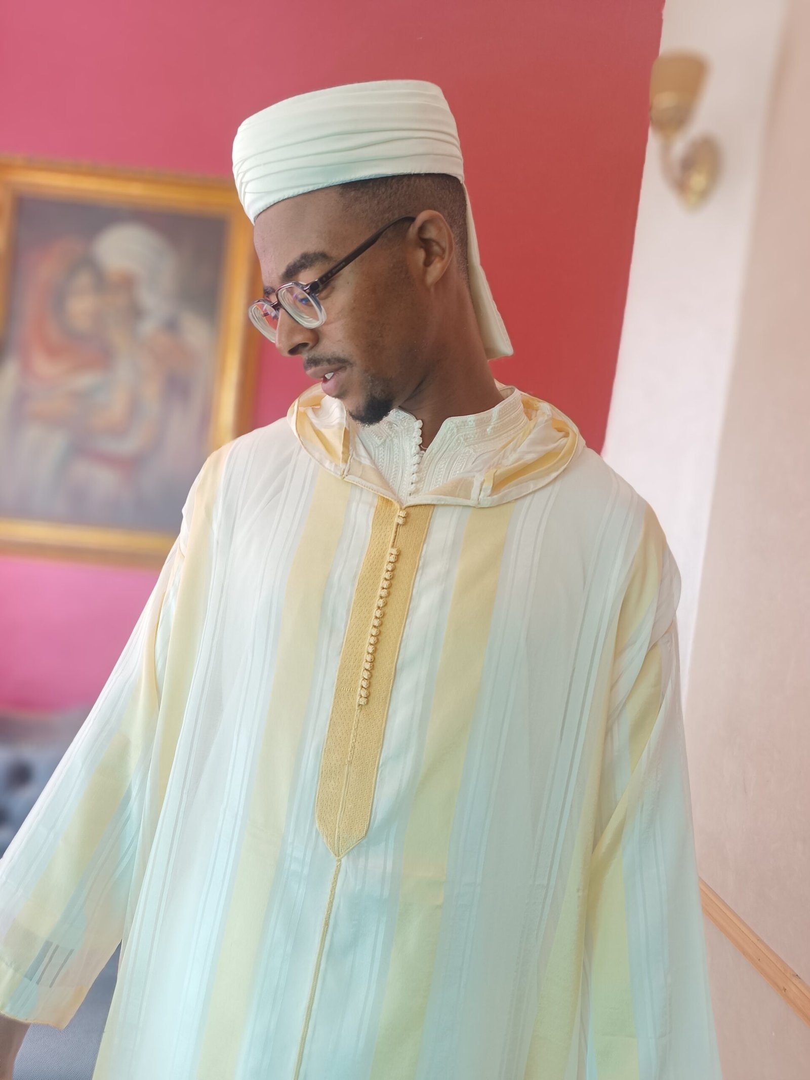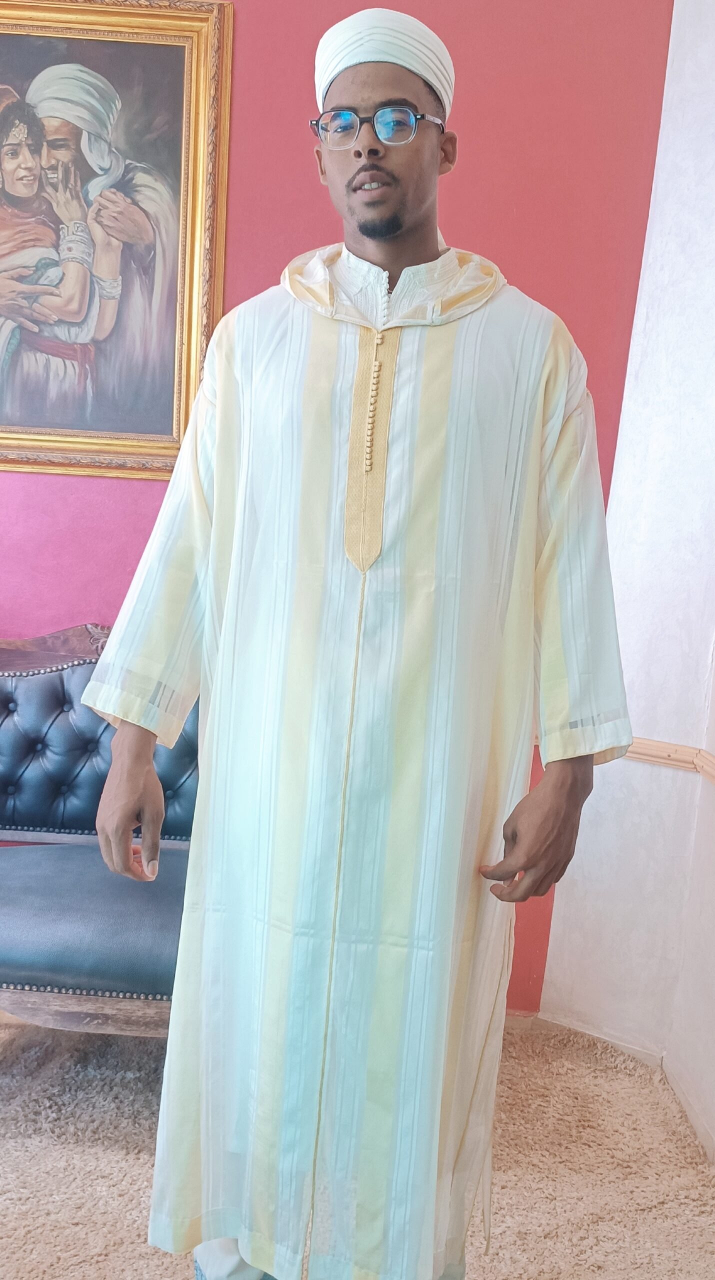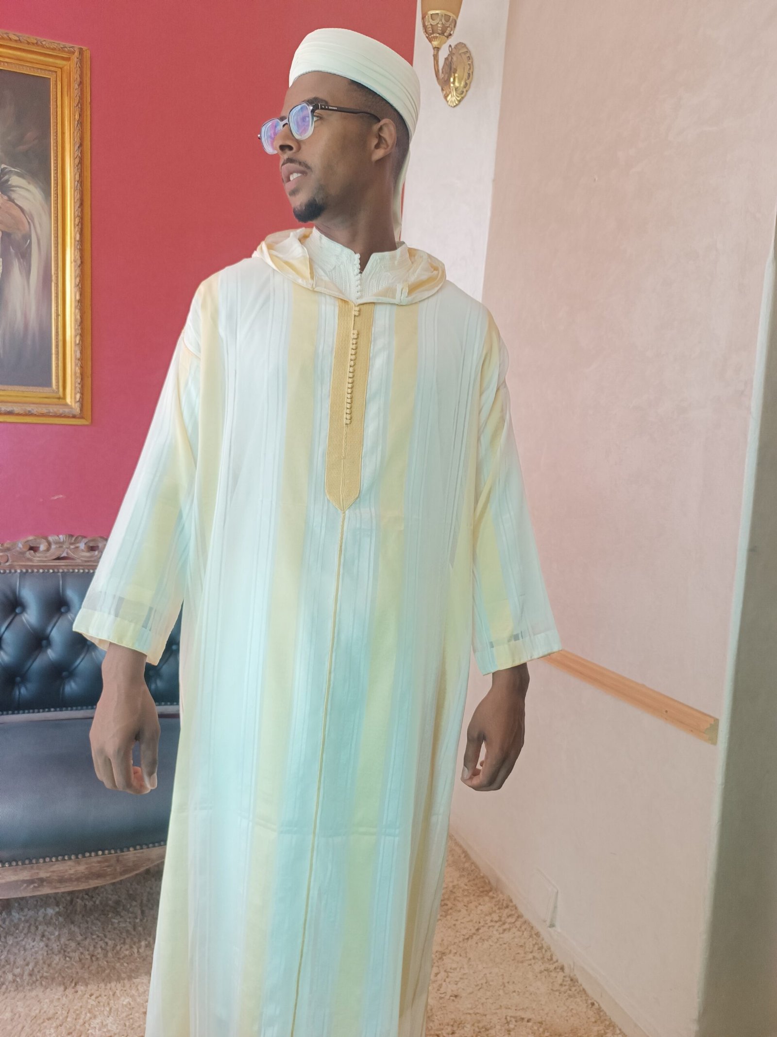 Jellaba jaune marocaine traditionnelle faite à la main