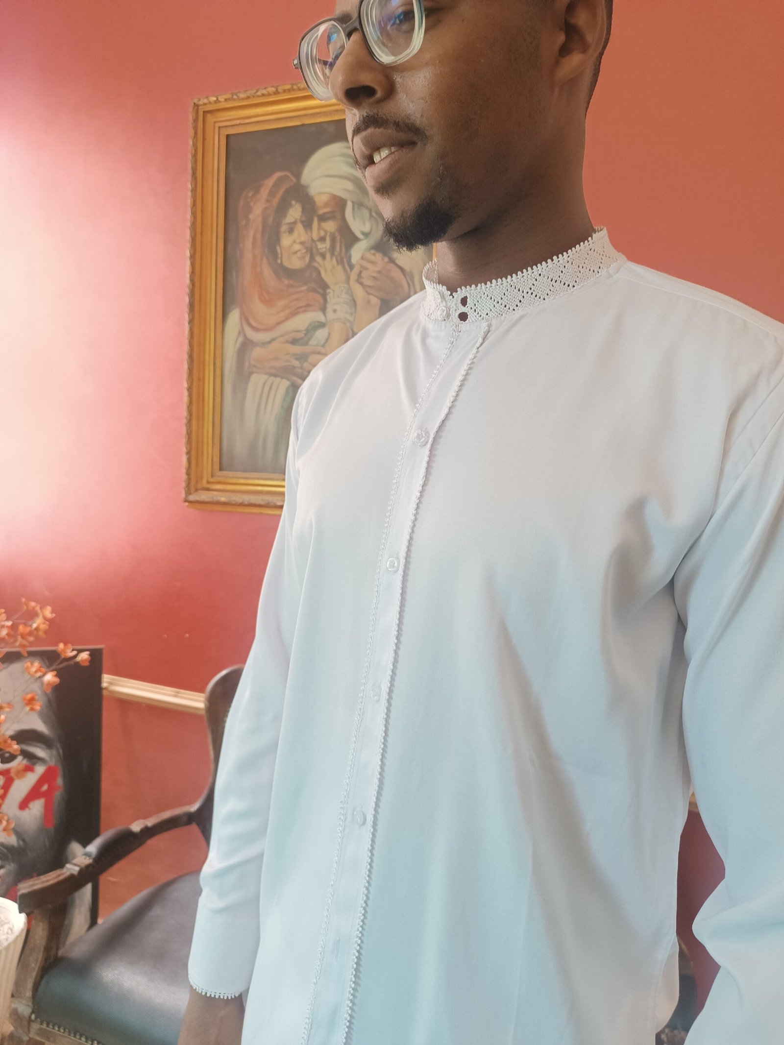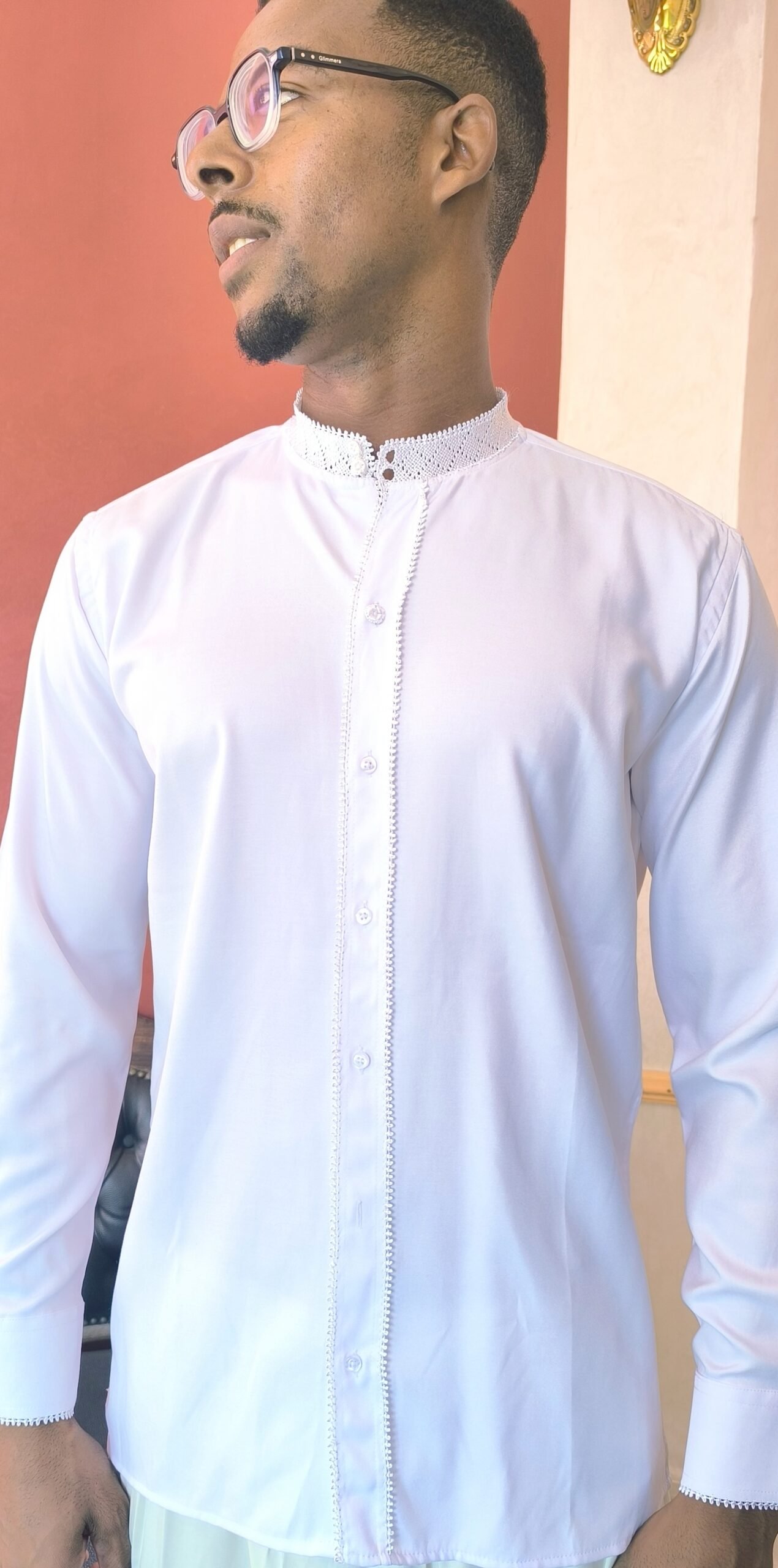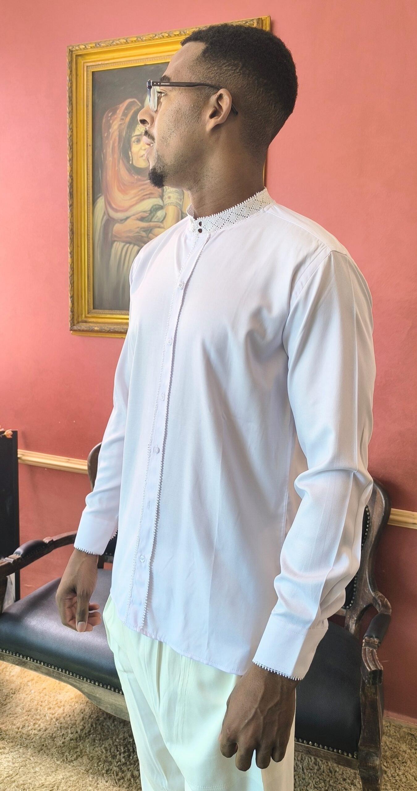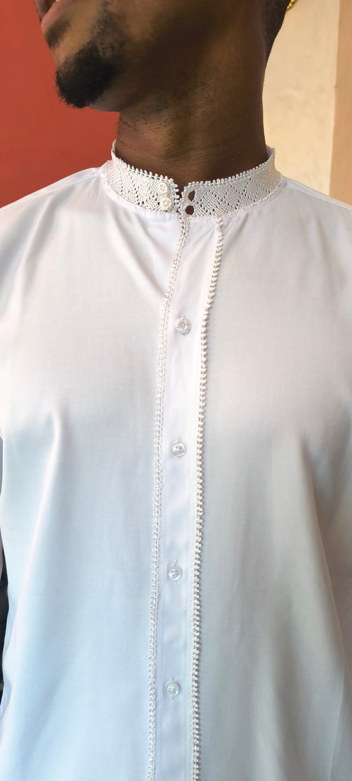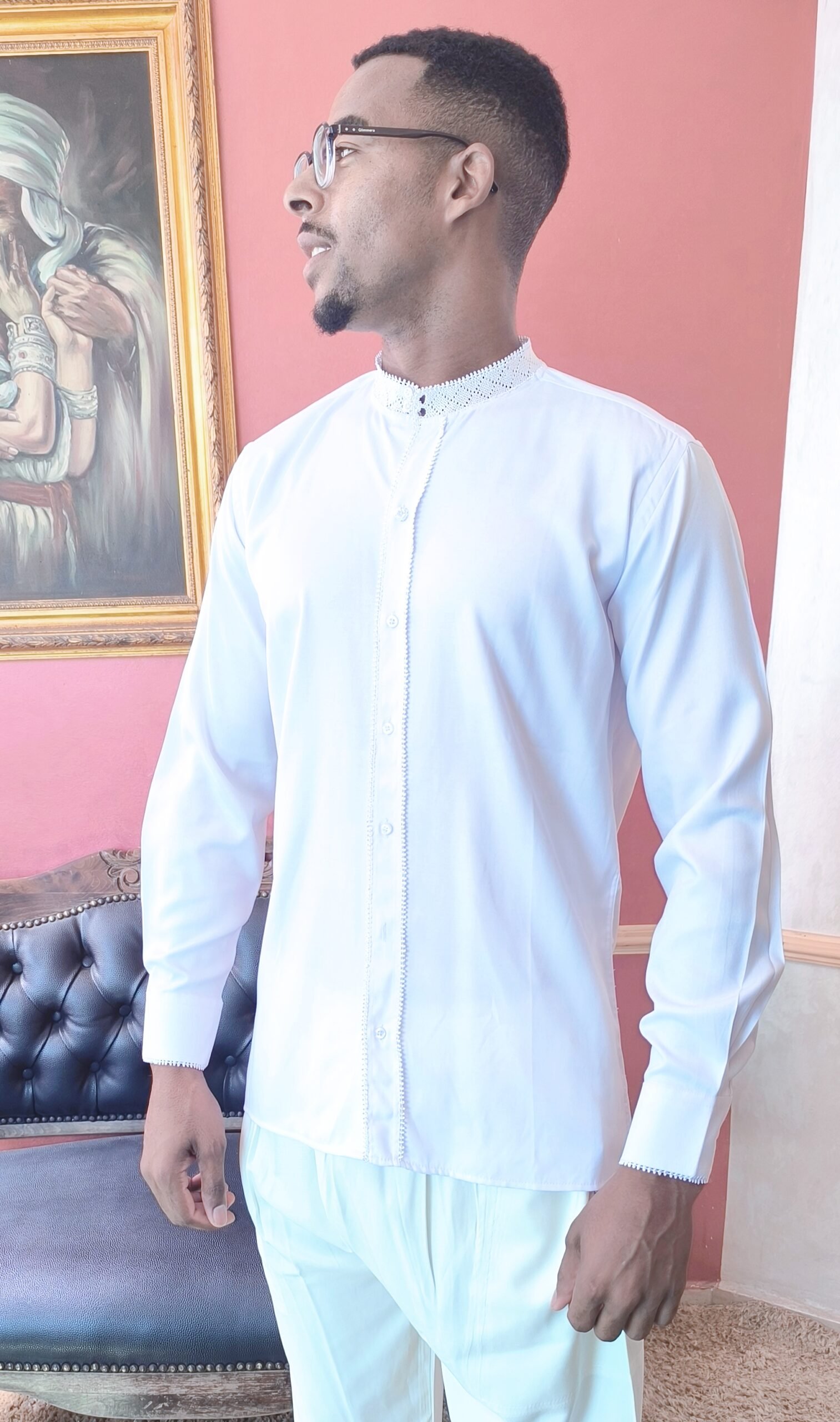 Une très belle chemise marocaine traditionnelle faite à la main. Un tissu blanc léger de premier choix orné par des broderies marocaines faites à la main finement réalisées par des artisans. Entièrement faite à la main et les broderies sont sur le tour du coup et l’extrémité des manches ainsi que sur le long du torse.
