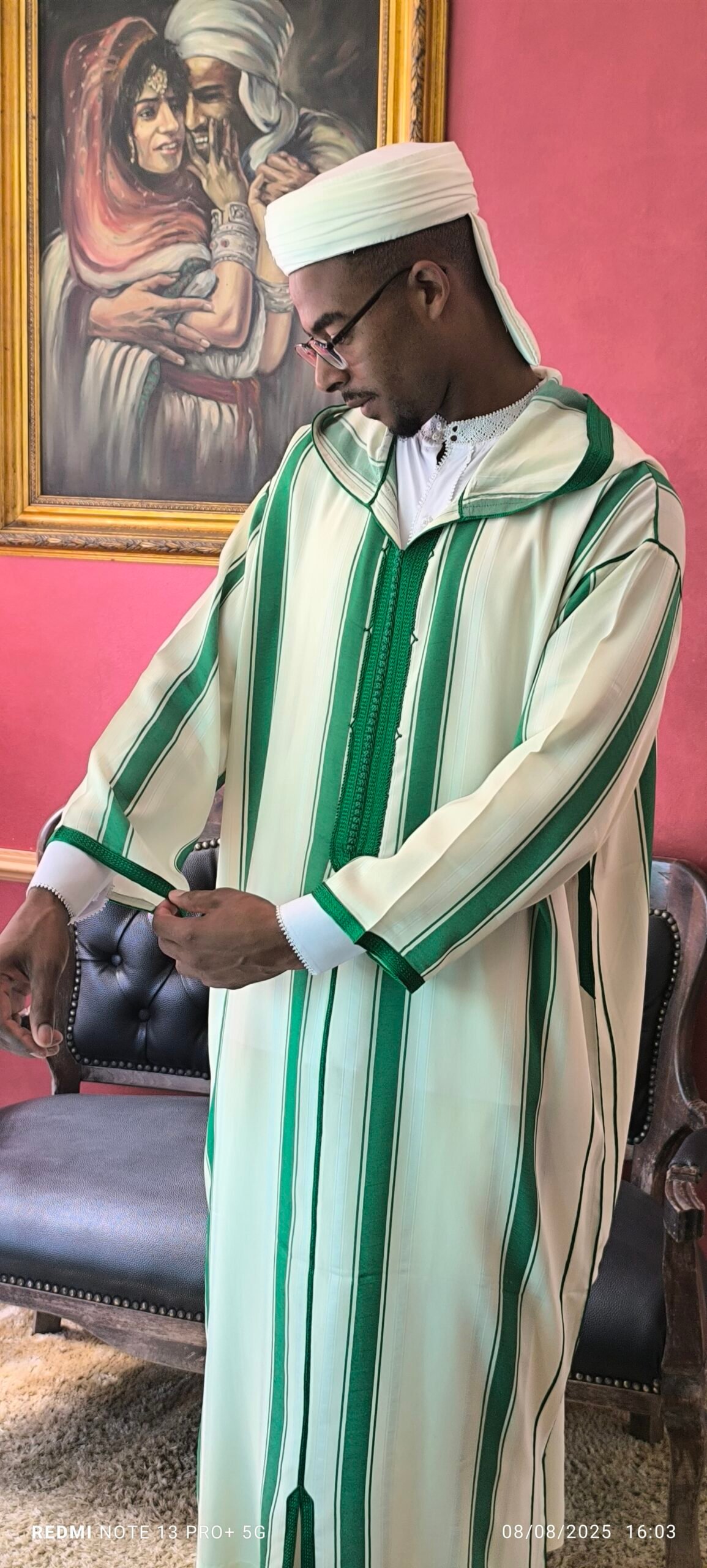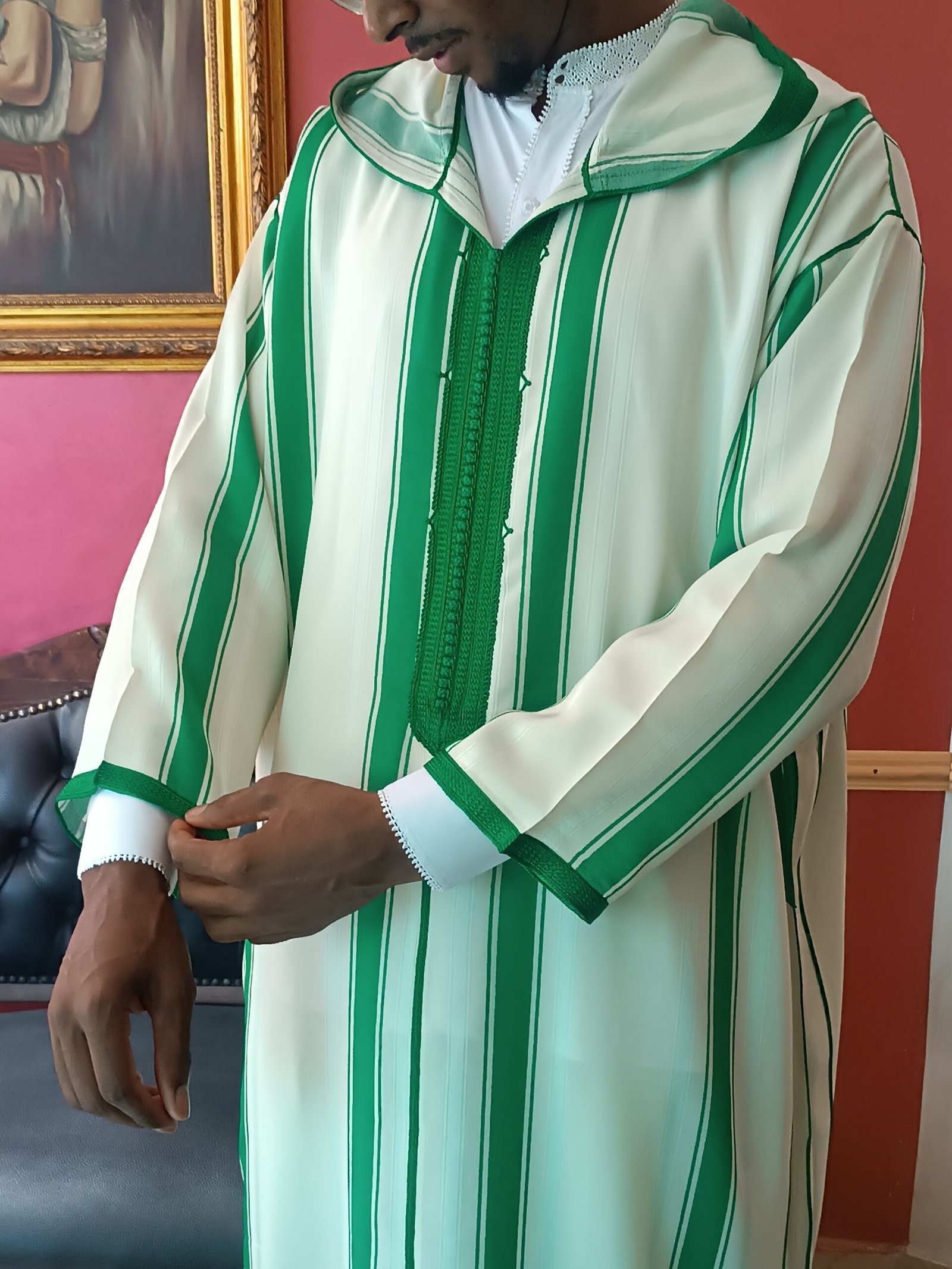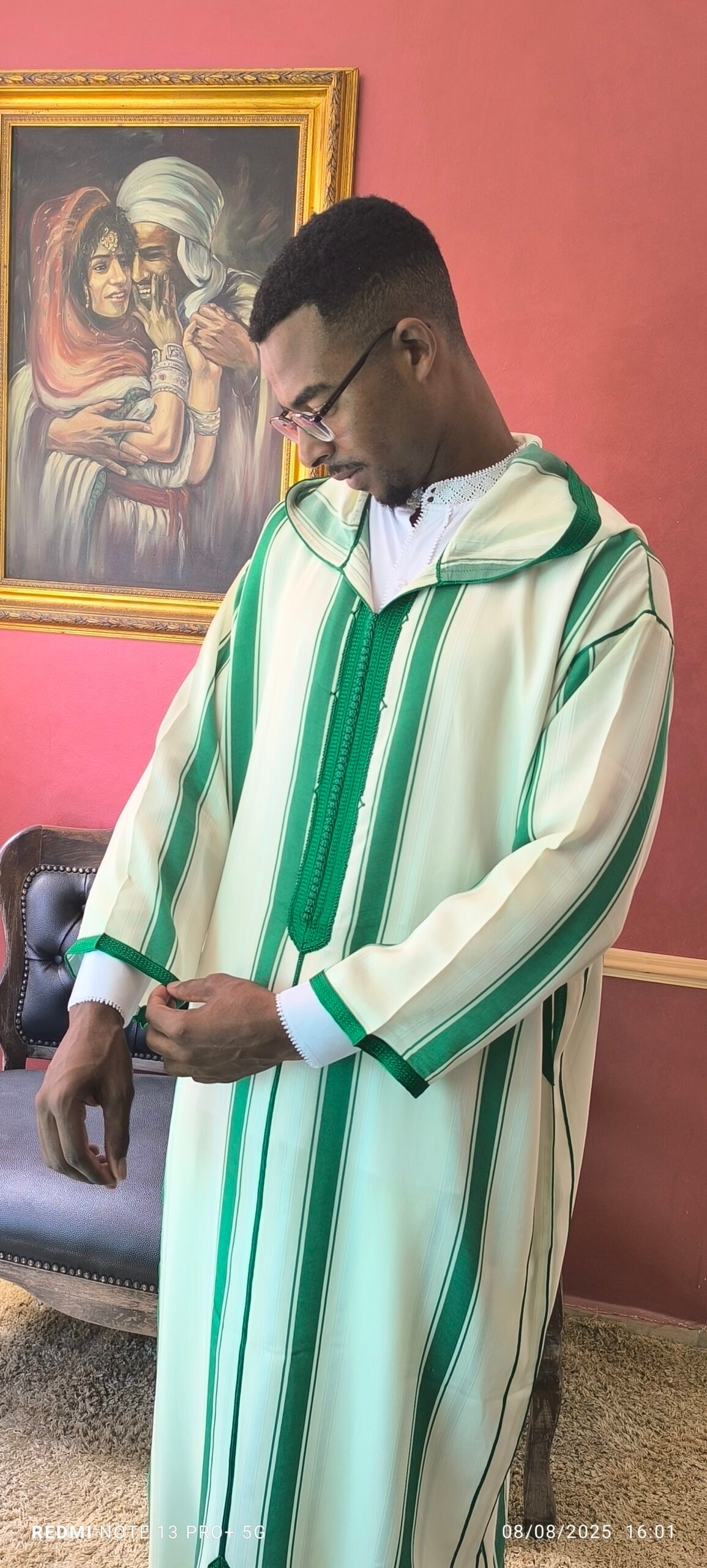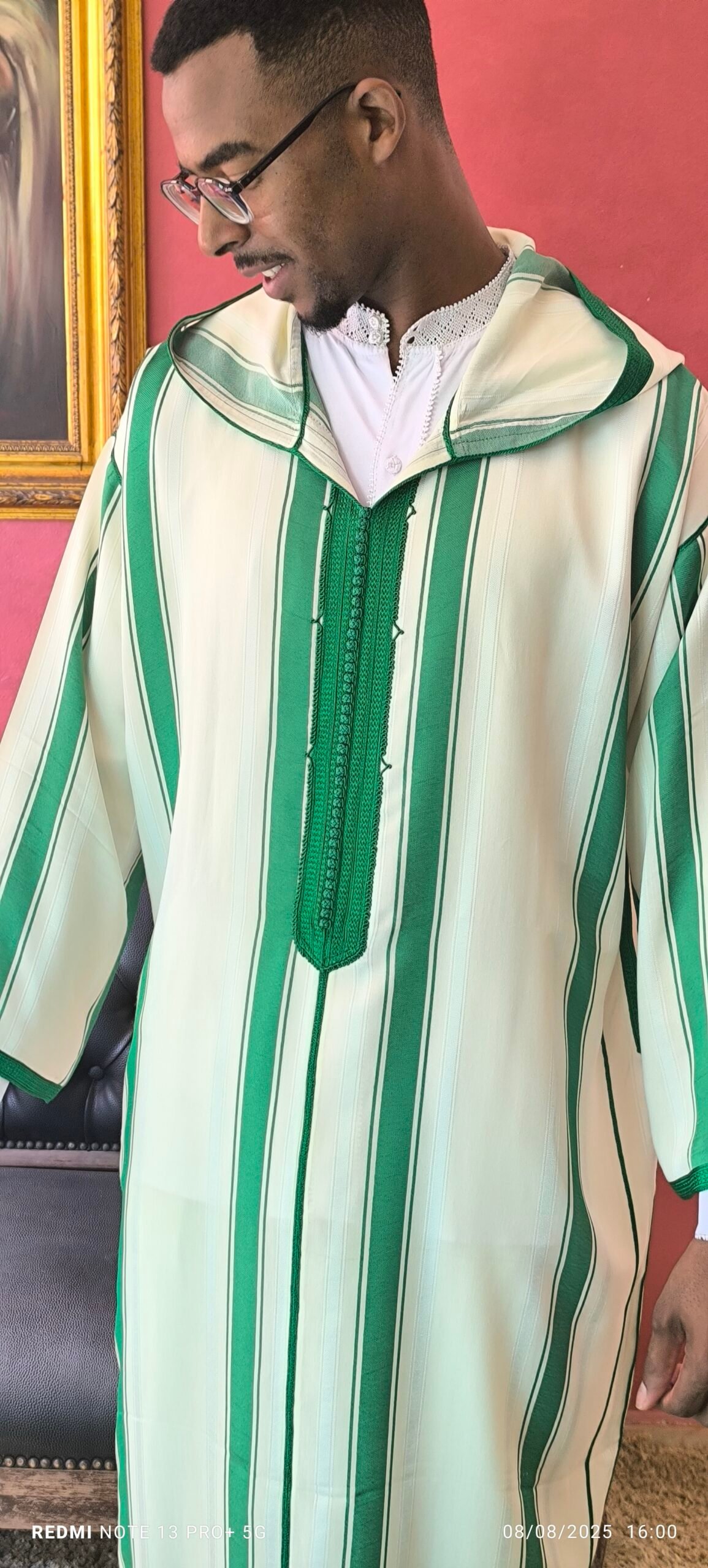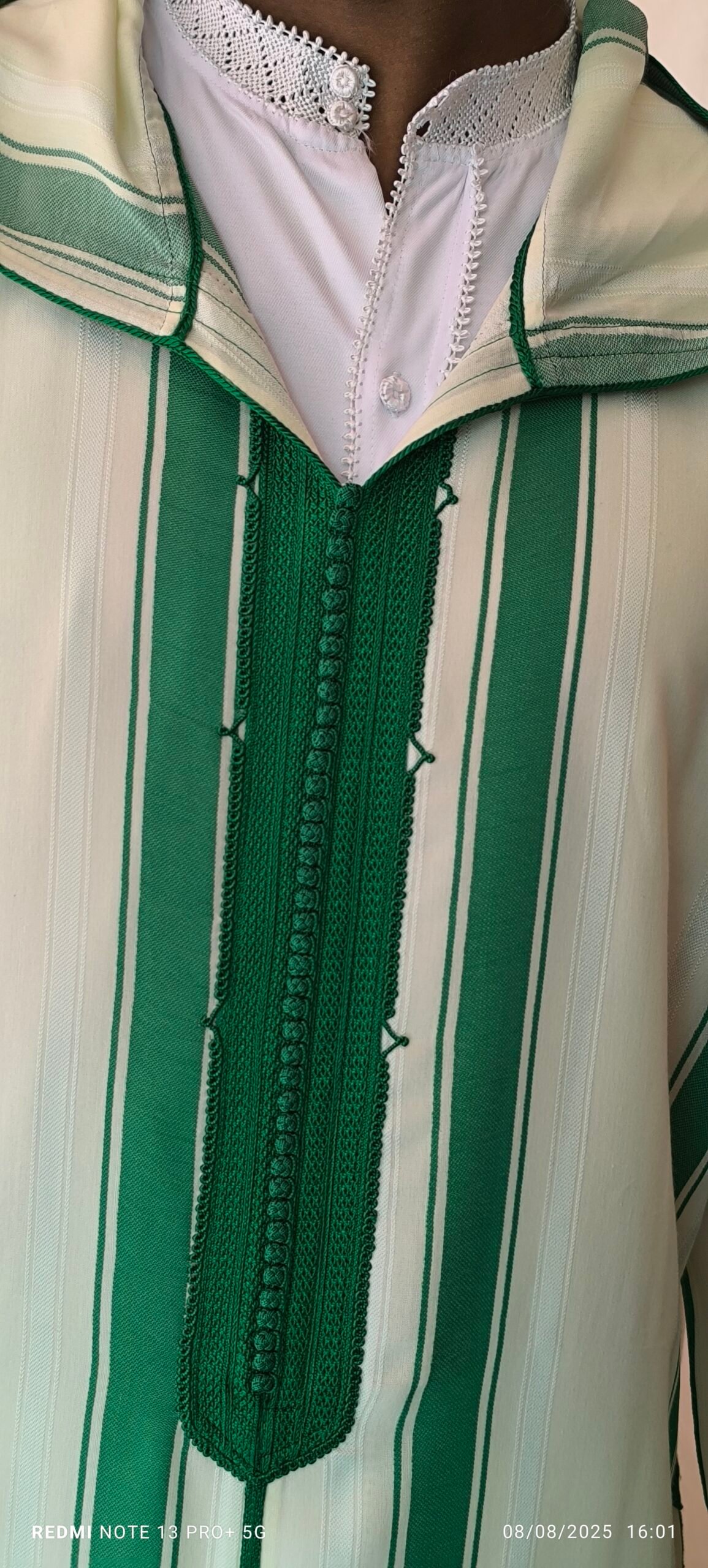 Très belle jellaba marocaine traditionnelle faite à la main. Un tissu de premier choix couleur blanche avec des broderies marocaines faites à la main vert vif. La jellaba est entièrement faite à la main. Taille L XL. Produit unique et authentique.